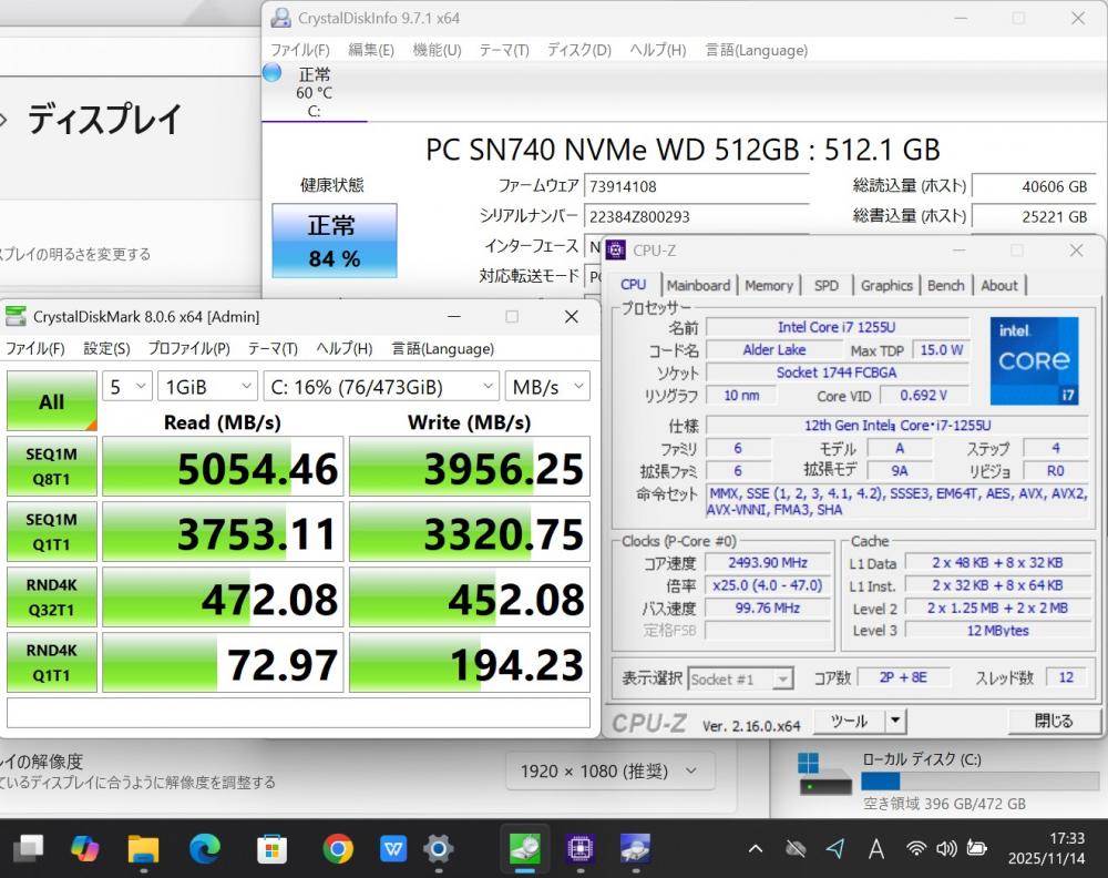 | CPU: 超高速 Intel 10コア 卓越性能 第12世代Core i7-1255U 1.7Ghz、 10コア12スレッド (ターボ・ブースト利用時の最大周波数 4.7GHz) |