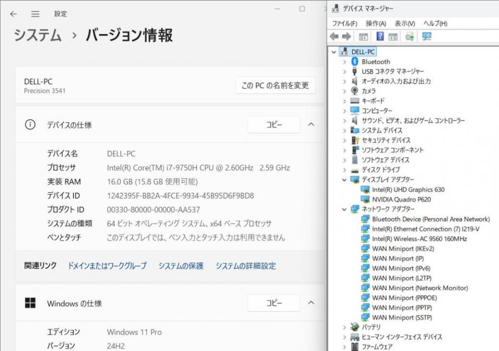 853時間 中古 フルHD 15.6型 DELL Precision 3541 Windows11 第9世代 i7-9750H 16GB NVMe 512GB-SSD NVIDIA Quadro P620 カメラ 無線 Office付き 中古パソコン 管:1519v