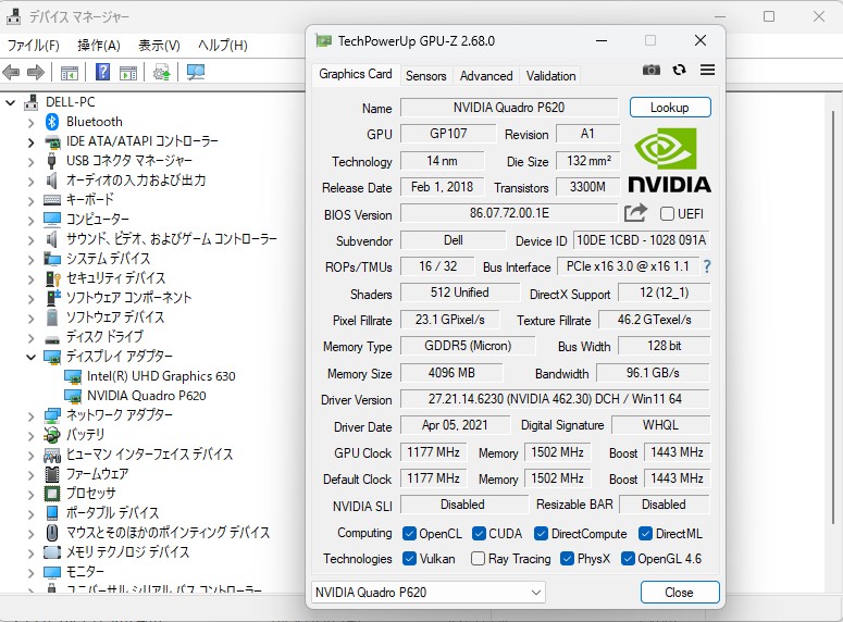 | ディスプレイ: 15.6インチ1366 x 768 解像度 グラフィックス NVIDIA Quadro P620 搭載、大容量 4096M専用ビデオメモリーvRAM 快適使用体験! |