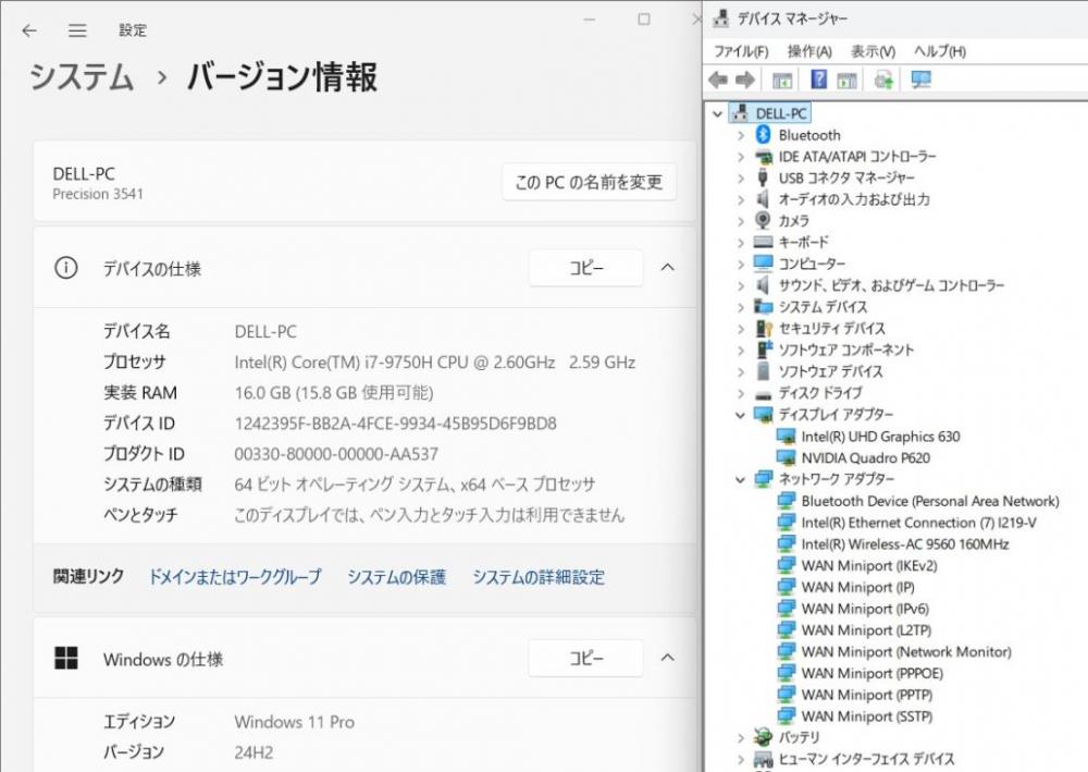 中古良品 フルHD 15.6型 DELL Precision 3541 Windows11 第9世代 i7-9750H 16GB NVMe 512GB-SSD NVIDIA Quadro P620 カメラ 無線 Office付き 中古パソコン 管:1332v