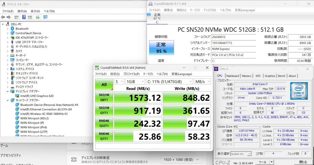 | CPU: 超高速 Intel 高性能 第8世代Core i7-8665U 1.9Ghz、 4コア8スレッド (ターボ・ブースト利用時の最大周波数 4.8GHz) |