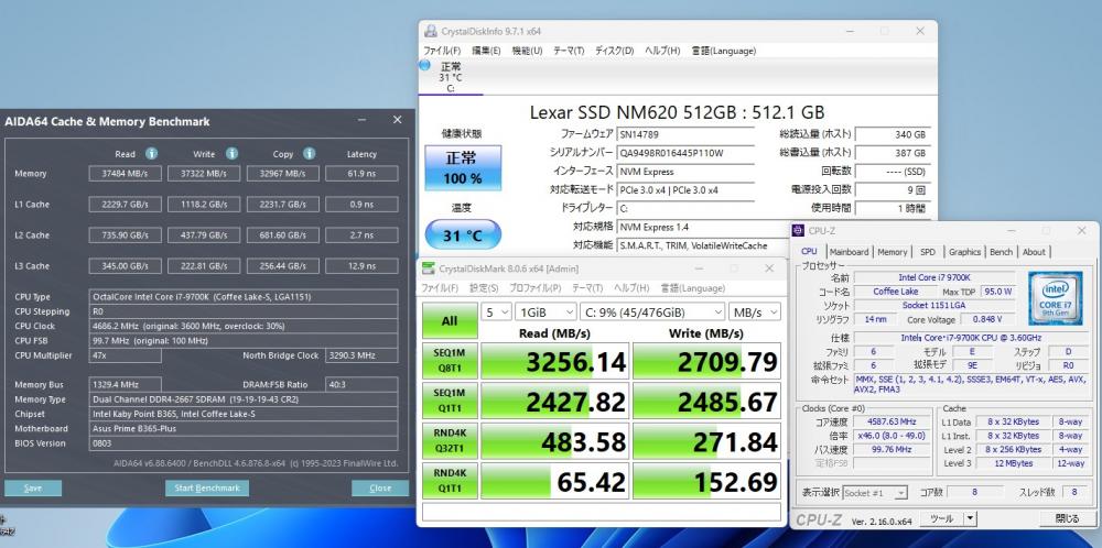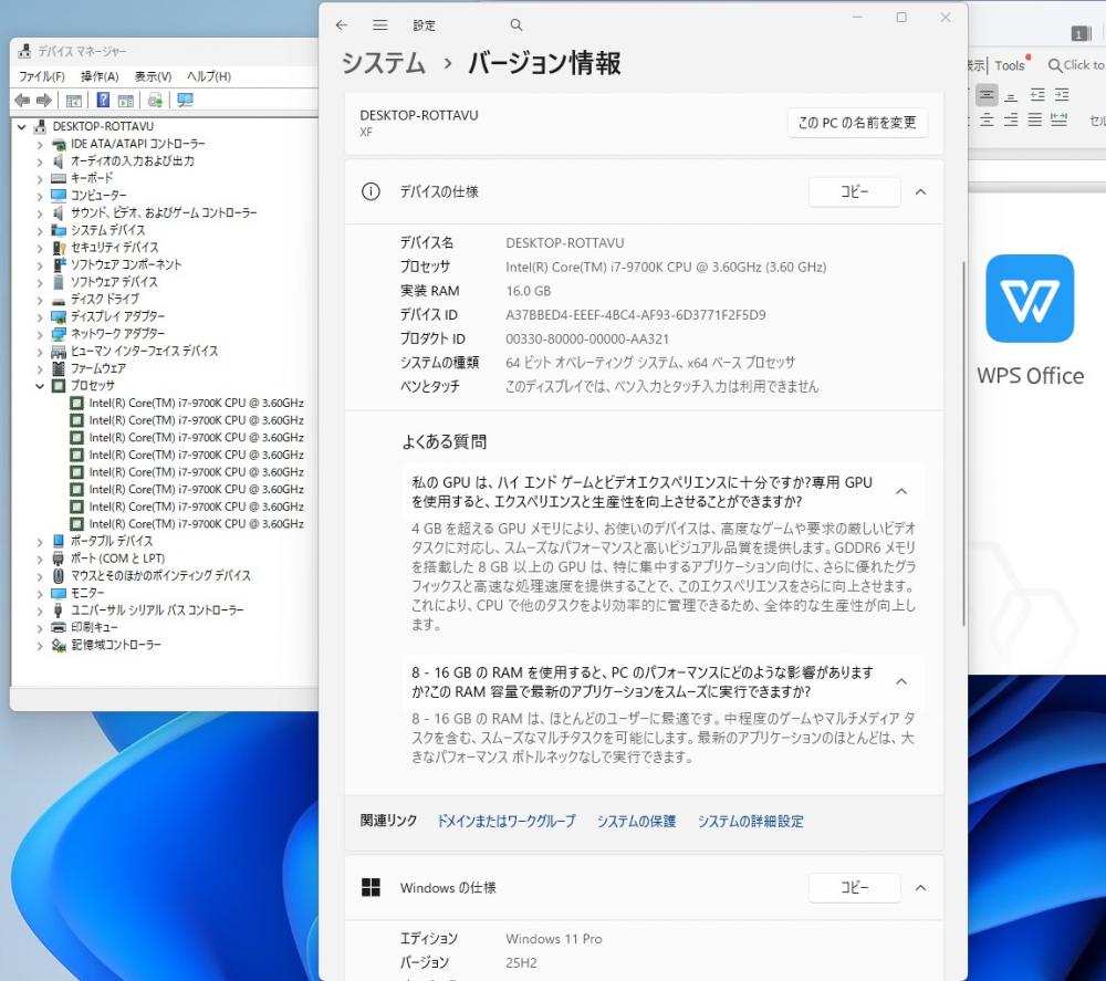 | CPU: 超高速 Intel 8コア 超高性能 第9世代Core i7-9700K 3.6Ghz、 8コア (ターボ・ブースト利用時の最大周波数 4.9GHz) |