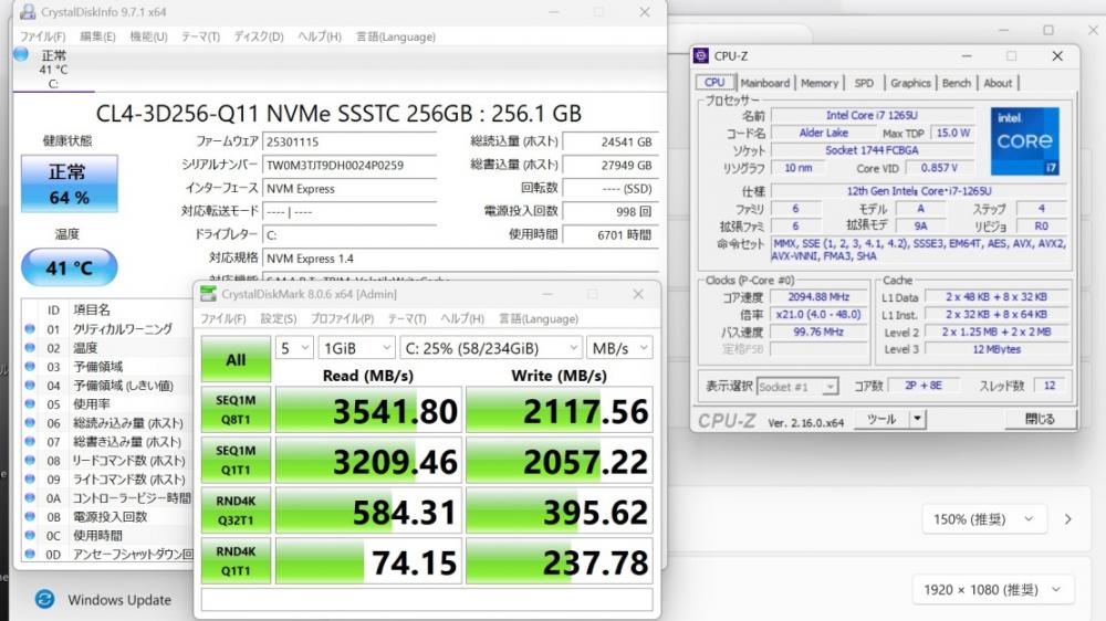 CPU:    超高速 Intel 10コア 卓越性能 第12世代Core i7-1265u 1.8Ghz、 10コア12スレッド (ターボ・ブースト利用時の最大周波数 4.8GHz)
