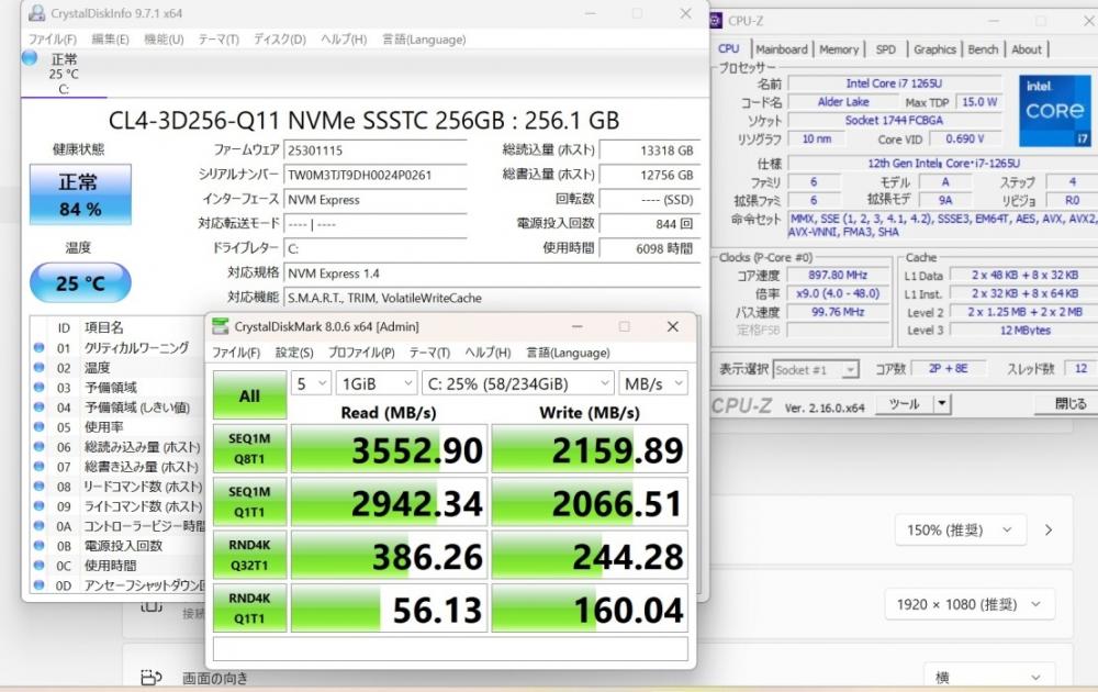 | CPU: 超高速 Intel 10コア 卓越性能 第12世代Core i7-1265u 1.8Ghz、 10コア12スレッド (ターボ・ブースト利用時の最大周波数 4.8GHz) |