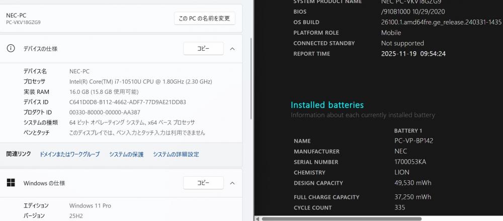 | CPU: 超高速 Intel 超高性能 第10世代Core i7-10510U 1.8Ghz、 4コア8スレッド (ターボ・ブースト利用時の最大周波数 4.9GHz) |