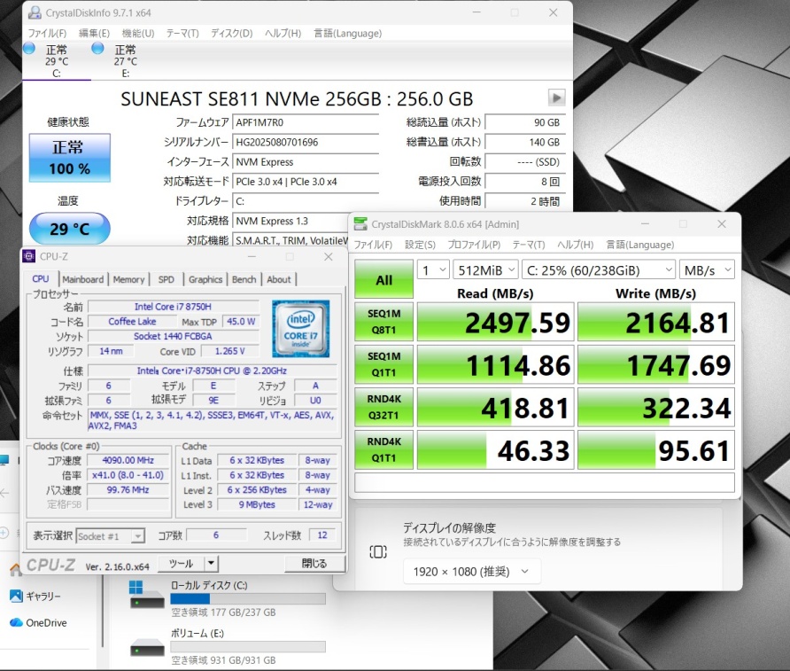 | ハードディスク: 爆速NVMe式 SSD 256GB超高速ドライブを搭載 +1000GB-HDD 静かで耐衝撃性に優れ、OSやプログラムなどのソフトの起動速度が大幅に高速化します!! |