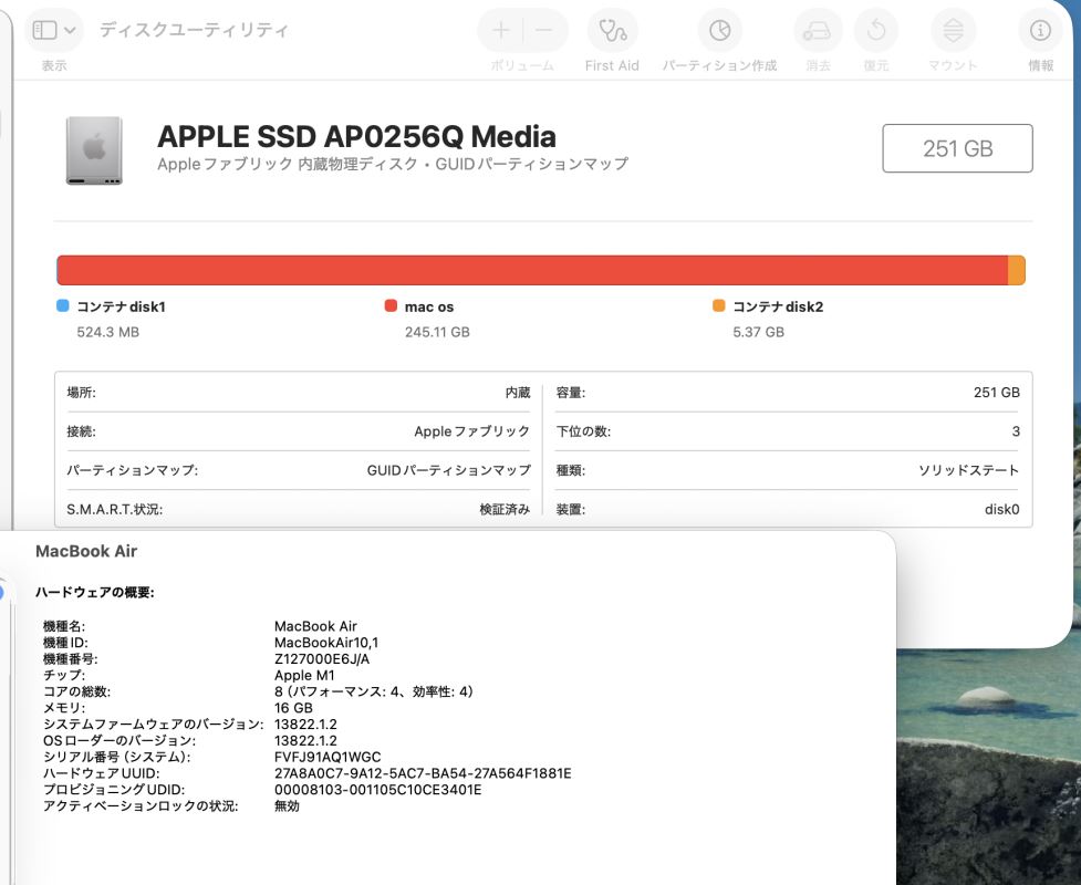 | リカバリー: (インターネットリカバリー macOS 11.0 Bigsur)あり、 いつでもパソコンを工場出荷時の状態に戻すことできます。 初心者でもご安心ください。 |