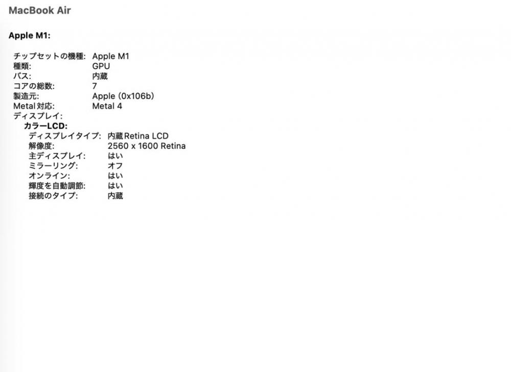 | CPU: 超高速 8コア 卓越性能Apple-M1 3.2Ghz、 8コア |