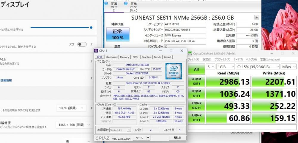 | CPU: 超高速 Intel 超高性能 第10世代Core i3-10110u 1.6Ghz、 (ターボ・ブースト利用時の最大周波数 4.1GHz) |