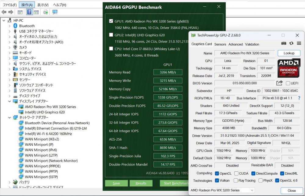 | ディスプレイ: フルHD 14インチ高輝度 広視野角 LEDバックライト 1920 x 1080解像度 グラフィックス Radeon Pro WX3200 搭載、大容量 4096M専用ビデオメモリーvRAM 快適使用体験! 専門向けのグラフィックスですが、ゲーミング性能にも、Radeon Pro WX3200 = NVIDIA GTX750Ti |