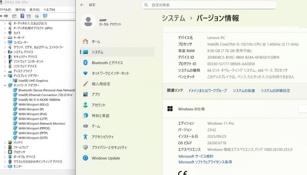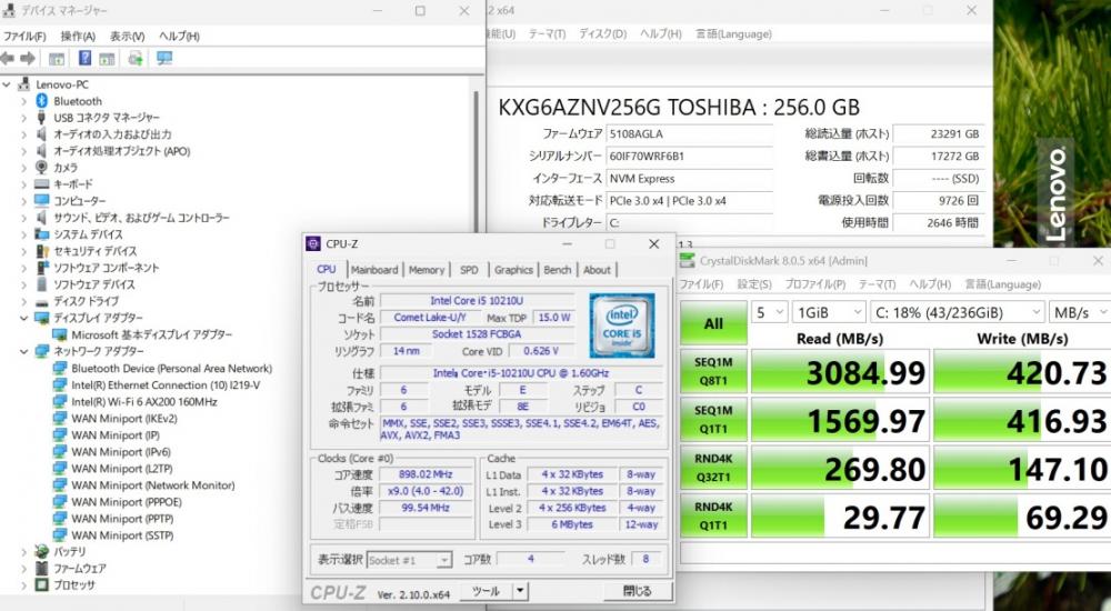 | CPU: 超高速 Intel 超高性能 第10世代Core i5-10210u 1.6Ghz、 4コア8スレッド (ターボ・ブースト利用時の最大周波数 4.2GHz) |