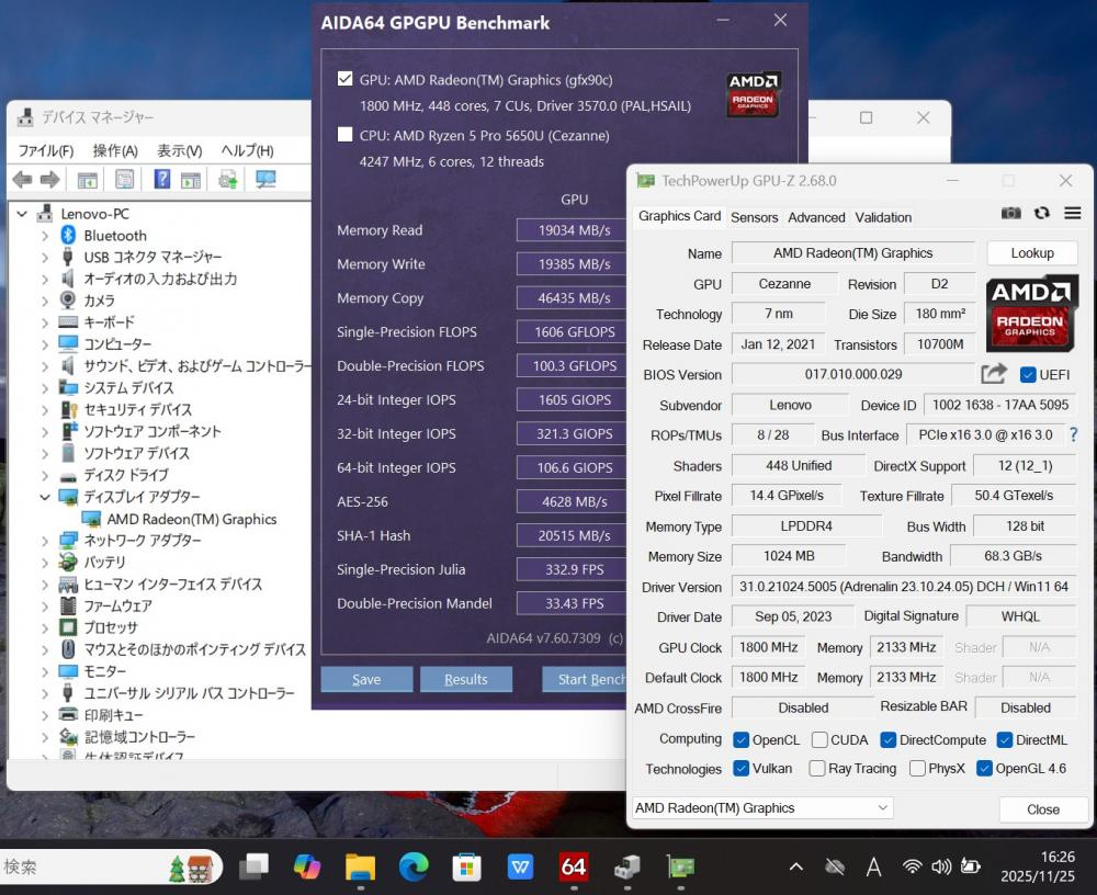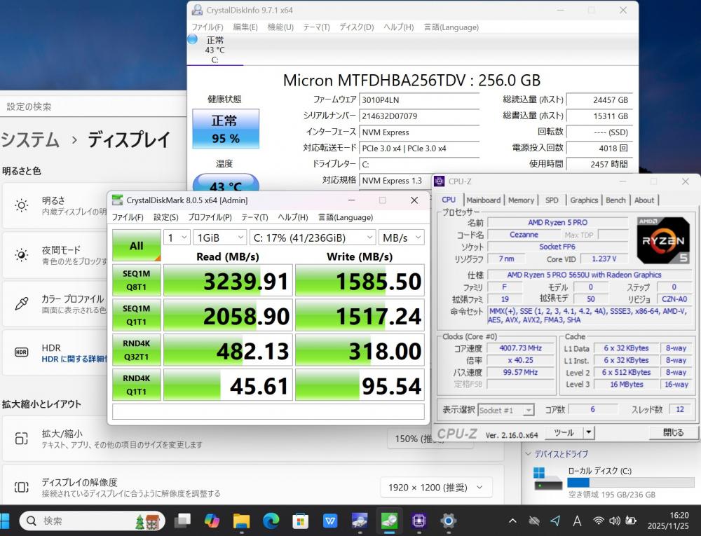 | CPU: 超高速 高性能 AMD Ryzen 5-Pro 5650u 2.3Ghz、 6コア12スレッド (ターボ・ブースト利用時の最大周波数 4.2GHz) |