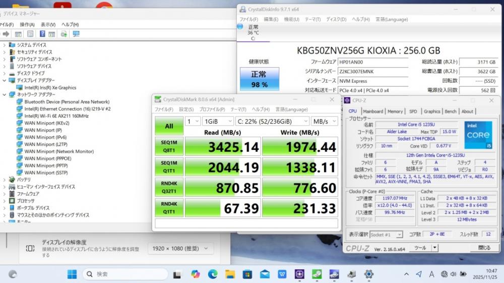 CPU:    超高速 Intel 10コア 卓越性能 第12世代Core i5-1235u 1.3Ghz、 10コア12スレッド (ターボ・ブースト利用時の最大周波数 4.4GHz)