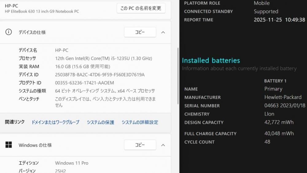 充放電回数48回 中古 フルHD 13.3型 HP EliteBook 630G9 Windows11 10コア 第12世代 i5-1235u 16GB NVMe 256GB-SSD カメラ 無線Wi-Fi6 Office付き 中古パソコン 管:0978r