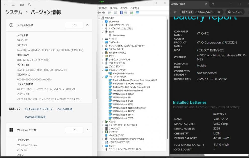 | インターフェイス: USB3.x接続口 x3個、USB Type-C接続口 x1個、 Webカメラ搭載、Bluetooth搭載、SDカードスロット、HDMI出力、SIMフリー LTEモジュール () |