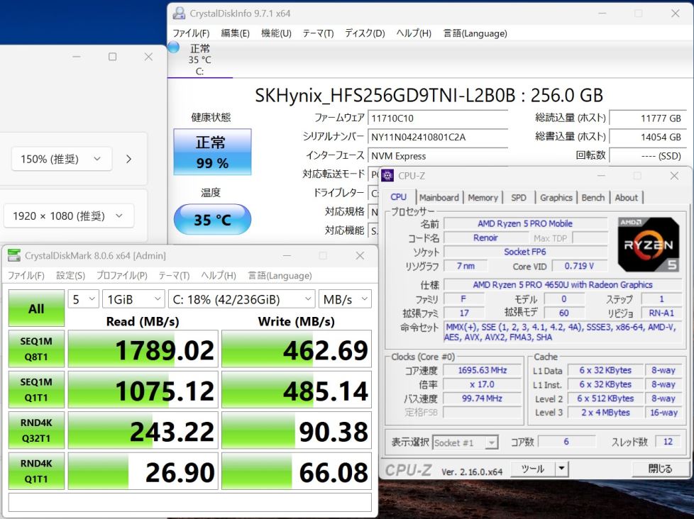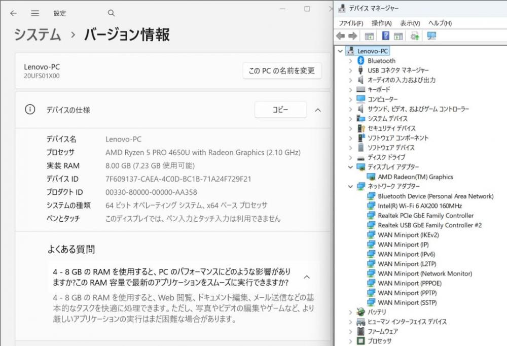 CPU:    超高速 高性能 AMD Ryzen 5-4650U 2.1Ghz、 6コア12スレッド (ターボ・ブースト利用時の最大周波数 4.0GHz)
