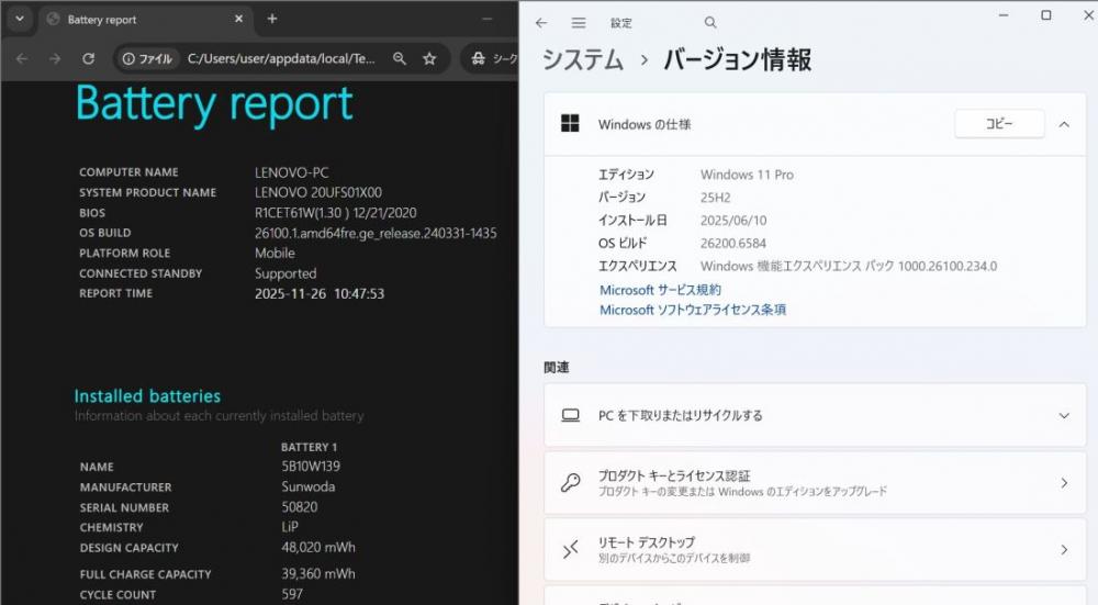 型番:     Lenovo  ThinkPad X13 Gen1 Type.20UF