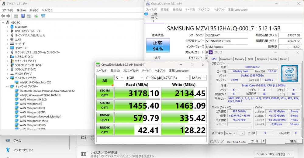 | ハードディスク: 爆速NVMe式 SSD 512GB超高速ドライブを搭載 静かで耐衝撃性に優れ、OSやプログラムなどのソフトの起動速度が大幅に高速化します!! |