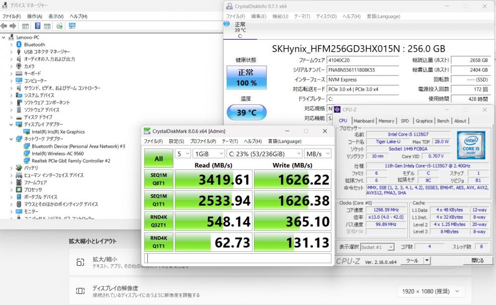 | CPU: 超高速 Intel 卓越性能 第11世代Core i5-1135G7 2.4Ghz、 4コア8スレッド (ターボ・ブースト利用時の最大周波数 4.2GHz) |