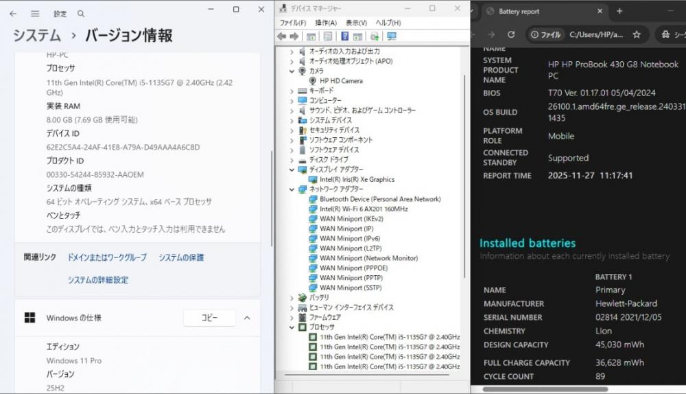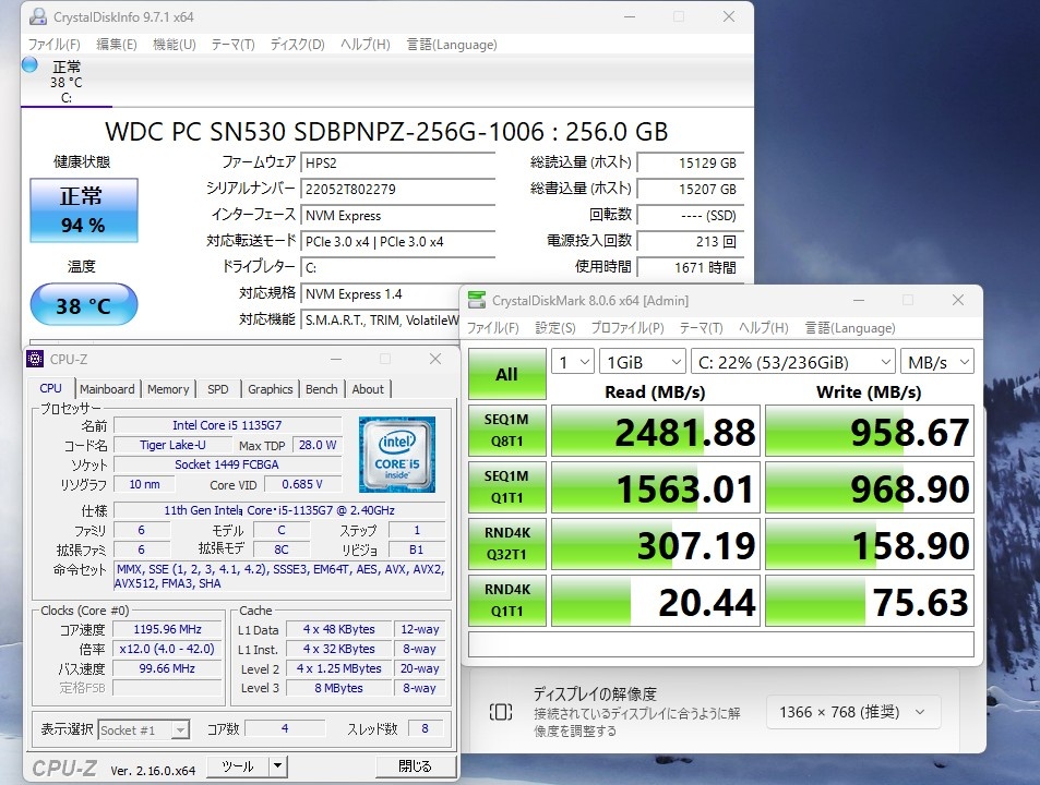 | CPU: 超高速 Intel 卓越性能 第11世代Core i5-1135G7 2.4Ghz、 4コア8スレッド (ターボ・ブースト利用時の最大周波数 4.2GHz) |