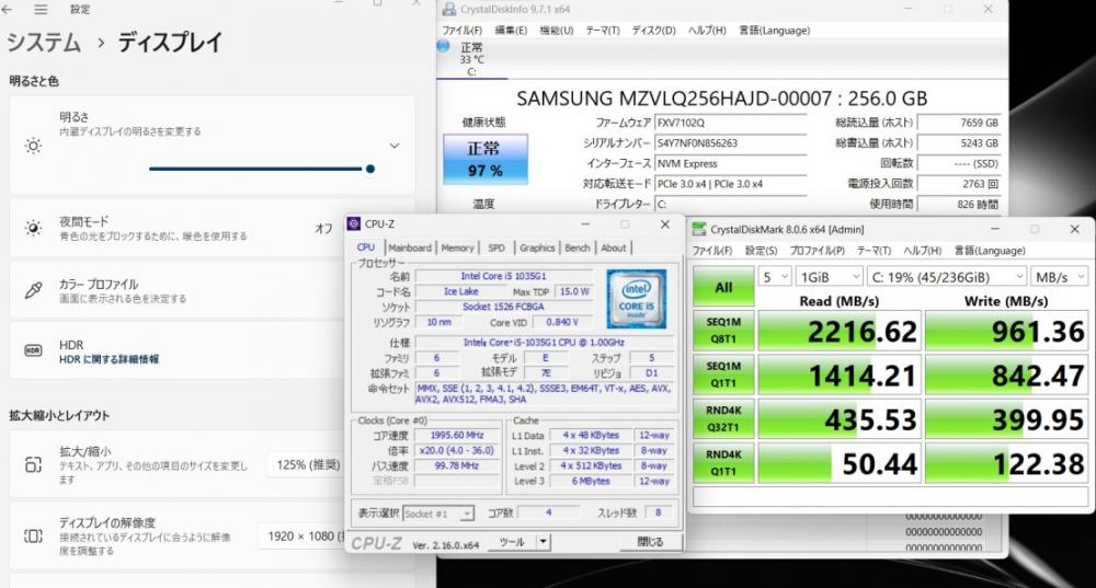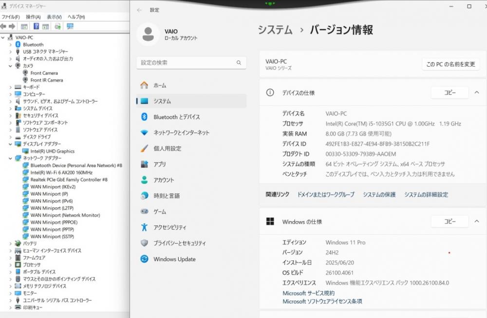 | CPU: 超高速 Intel 超高性能 第10世代Core i5-1035G1 1.0Ghz、 4コア8スレッド (ターボ・ブースト利用時の最大周波数 3.6GHz) |