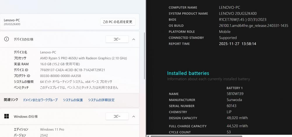 | 型番: Lenovo ThinkPad X13 Gen1 |