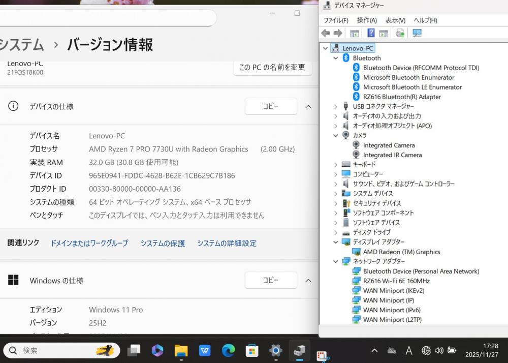 | 型番: Lenovo ThinkPad L13 Gen4(Type-21FQ) |