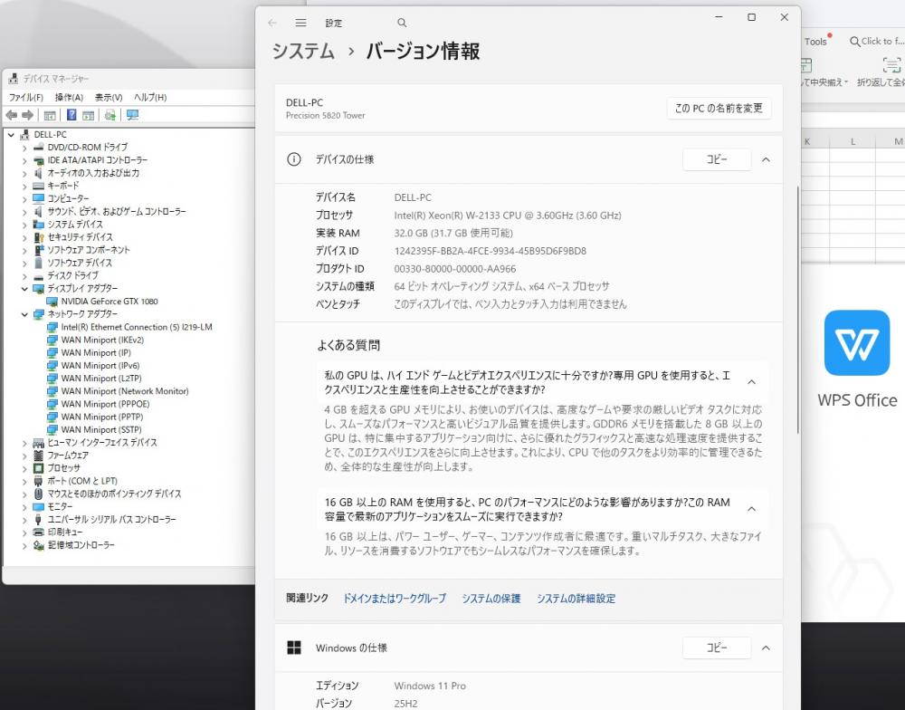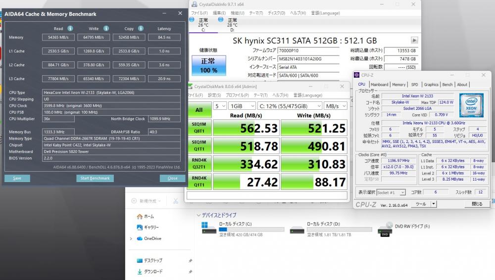 | CPU: 超高速 Intel Xeon W-2133 3.6Ghz、 6コア12スレッド (ターボ・ブースト利用時の最大周波数 3.9GHz) |