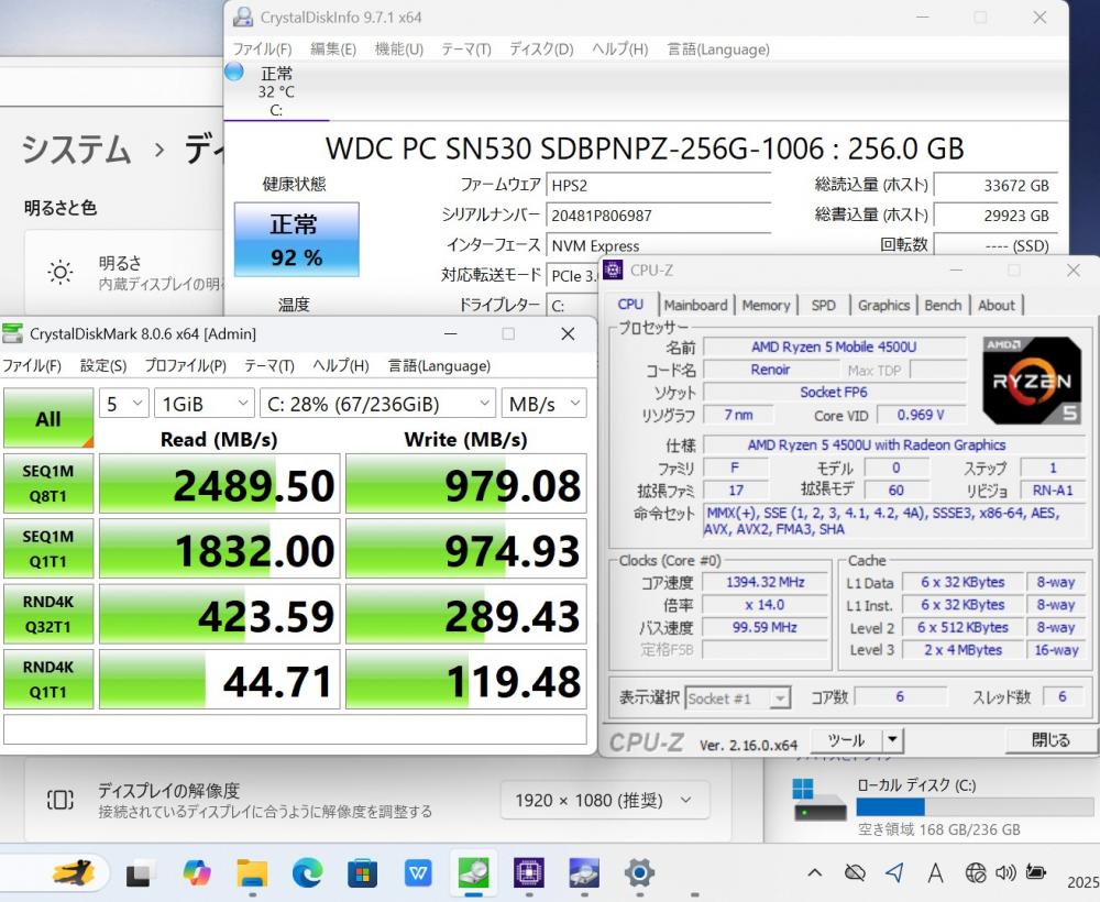 CPU:    超高速 高性能 AMD Ryzen 5-4500U 2.3Ghz、 6コア (ターボ・ブースト利用時の最大周波数 4.0GHz)