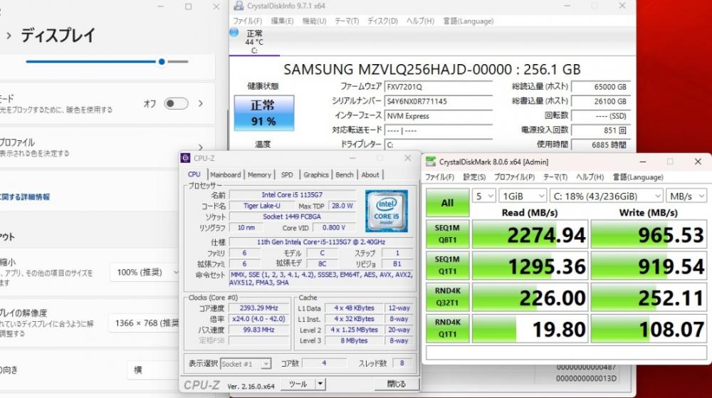 | CPU: 超高速 Intel 卓越性能 第11世代Core i5-1135G7 2.4Ghz、 4コア8スレッド (ターボ・ブースト利用時の最大周波数 4.2GHz) |