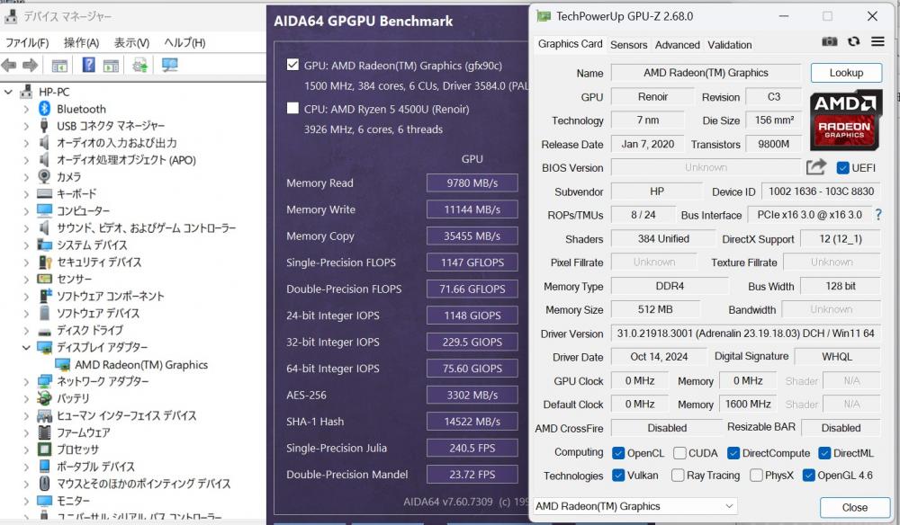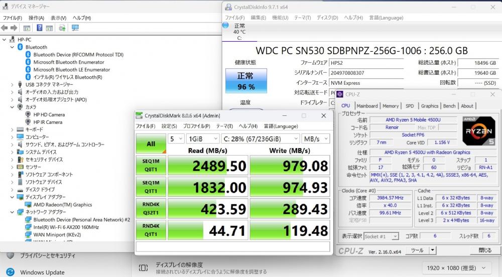 | CPU: 超高速 高性能 AMD Ryzen 5-4500U 2.3Ghz、 6コア (ターボ・ブースト利用時の最大周波数 4.0GHz) |