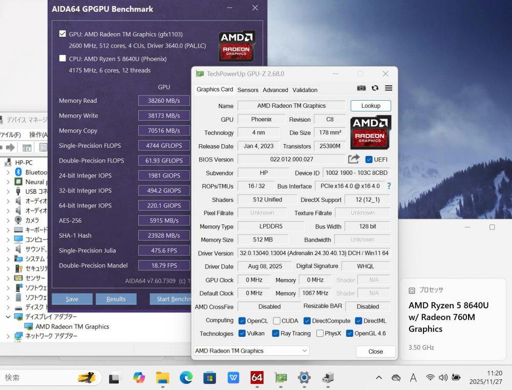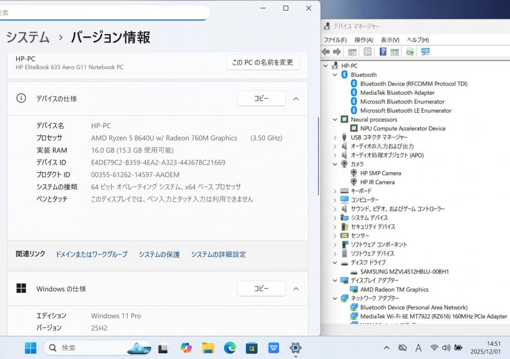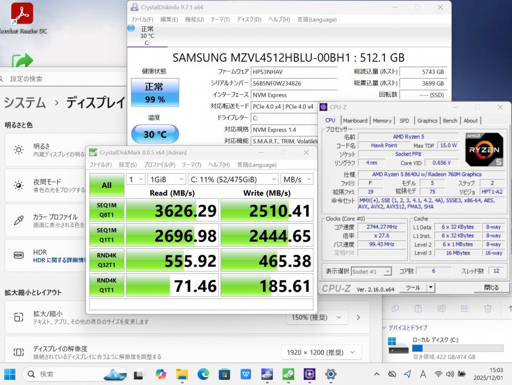 | CPU: 超高速 高性能 AMD Ryzen 5-8640u 3.5Ghz、 6コア12スレッド (ターボ・ブースト利用時の最大周波数 4.9GHz) |