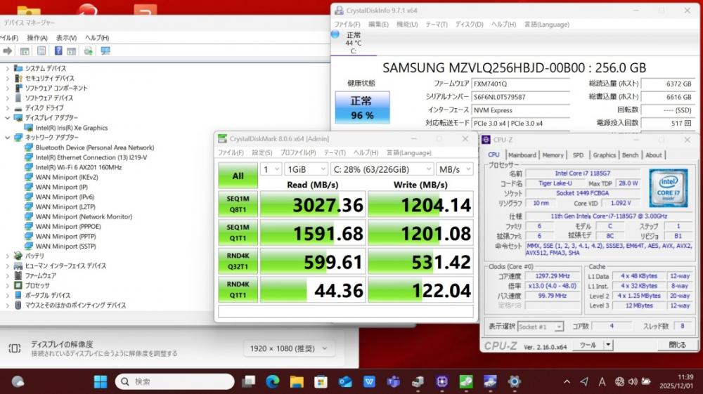 | CPU: 超高速 Intel 卓越性能 第11世代Core i7-1185g7 3.0Ghz、 4コア8スレッド (ターボ・ブースト利用時の最大周波数 4.8GHz) |