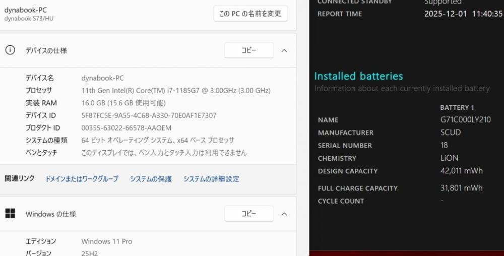 | プロダクトシール: Win11 Pro シールがあります。 |