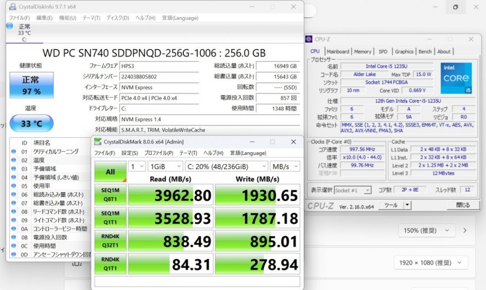 | CPU: 超高速 Intel 10コア 卓越性能 第12世代Core i5-1235u 1.3Ghz、 10コア12スレッド (ターボ・ブースト利用時の最大周波数 4.4GHz) |