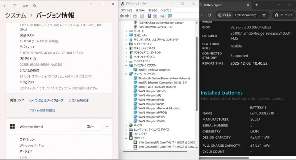 OS:      最新 Windows11 Pro 64bitアップグレード済み、Microsoft正規版 認証済み 安心使用。
