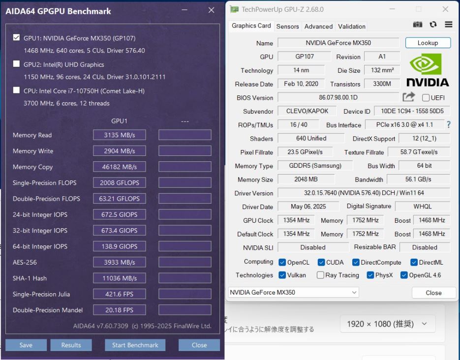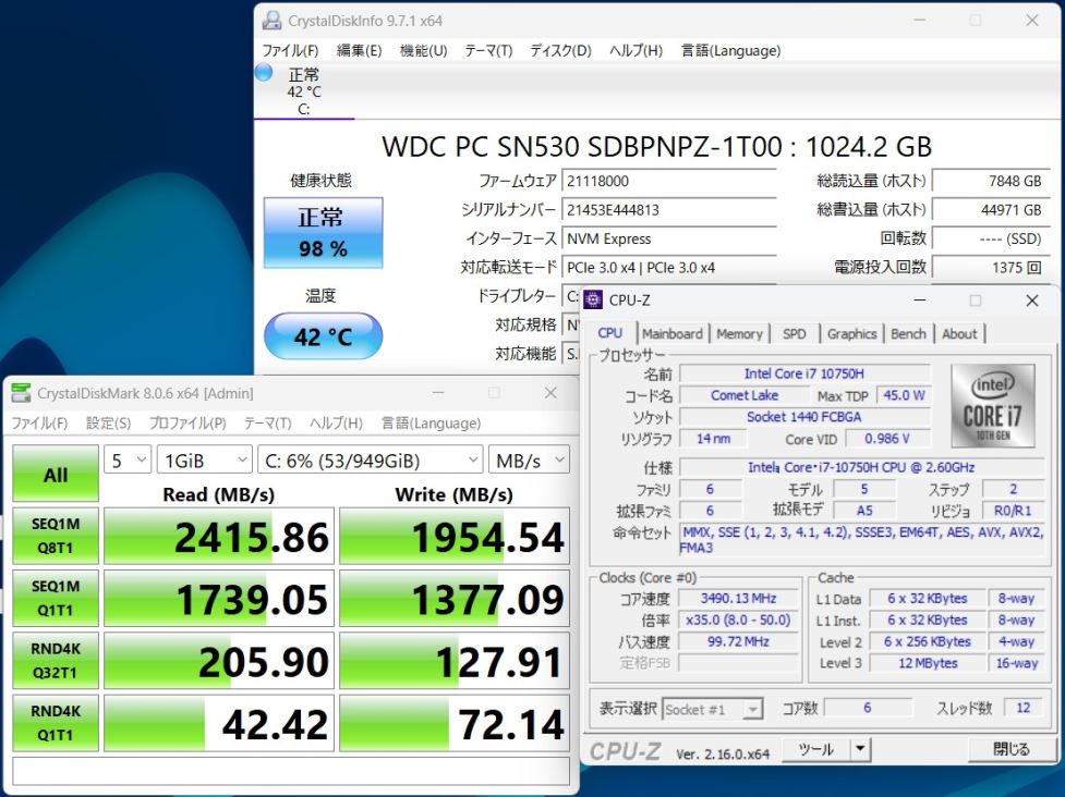 | CPU: 超高速 Intel 超高性能 第10世代Core i7-10750H 2.6Ghz、 6コア12スレッド (ターボ・ブースト利用時の最大周波数 5.0GHz) |