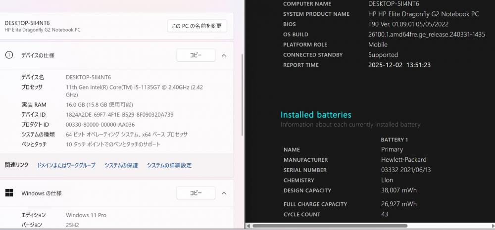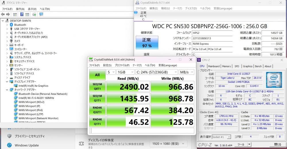 | CPU: 超高速 Intel 卓越性能 第11世代Core i5-1135G7 2.4Ghz、 4コア8スレッド (ターボ・ブースト利用時の最大周波数 4.2GHz) |