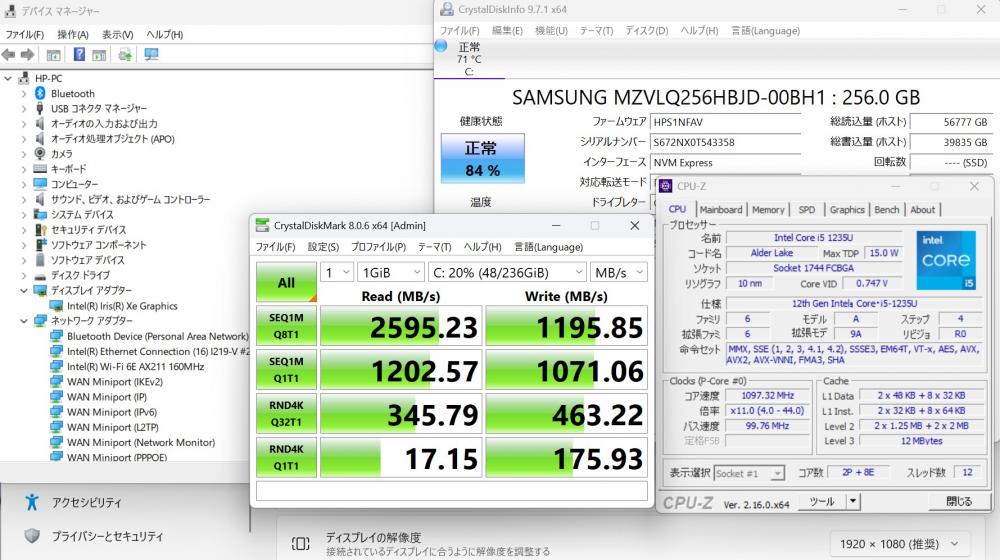 | CPU: 超高速 Intel 10コア 卓越性能 第12世代Core i5-1235U 1.3Ghz、 10コア12スレッド (ターボ・ブースト利用時の最大周波数 4.4GHz) |