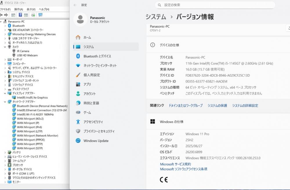 中古 フルHD対応WUXGA 12.1型 Panasonic Let's Note CF-SV1RDLKS Windows11 第11世代 i5-1145G7 16GB NVMe 256GB-SSD カメラ 無線Wi-Fi6 Office付き 中古パソコン 管:1520s