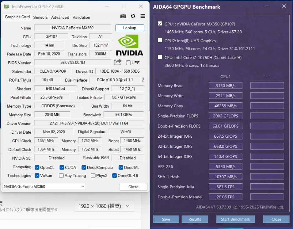 CPU:    超高速 Intel 超高性能 第10世代Core i7-10750H 2.6Ghz、 6コア12スレッド (ターボ・ブースト利用時の最大周波数 5.0GHz)