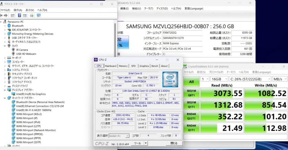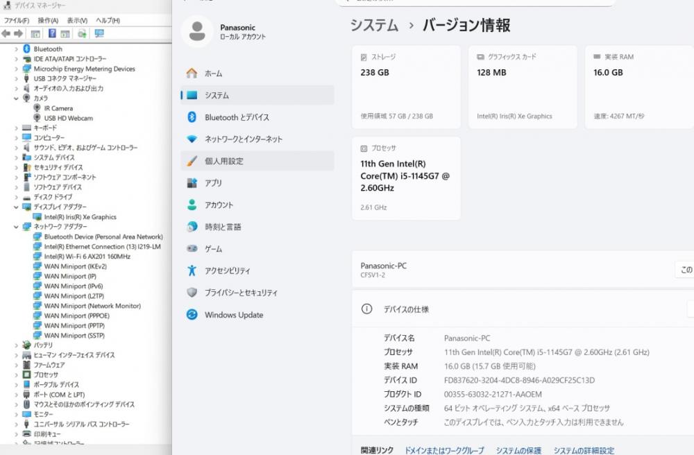 CPU:    超高速 Intel 卓越性能 第11世代Core i5-1145G7 2.6Ghz、 4コア8スレッド (ターボ・ブースト利用時の最大周波数 4.4GHz)