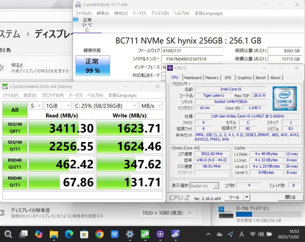 | CPU: 超高速 Intel 卓越性能 第11世代Core i5-1145G7 2.6Ghz、 4コア8スレッド (ターボ・ブースト利用時の最大周波数 4.4GHz) |