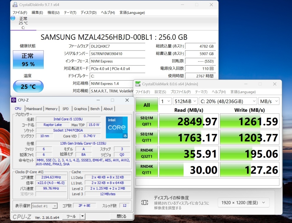 CPU:    超高速 Intel 10コア 卓越性能 第13世代Core i5-1335U 1.3Ghz、 10コア12スレッド (ターボ・ブースト利用時の最大周波数 4.6GHz)