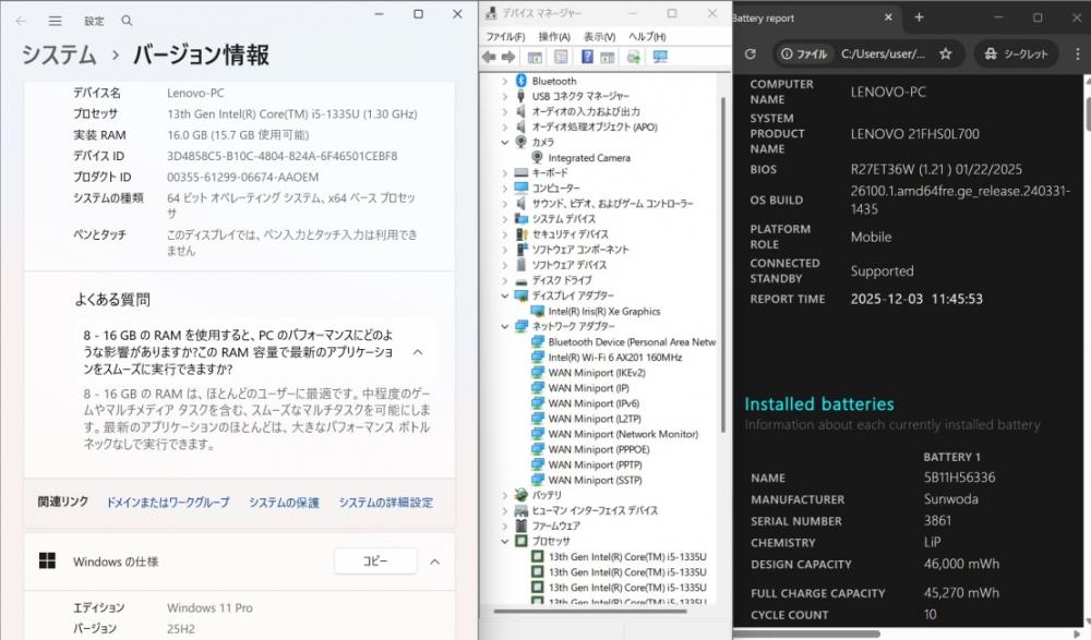 良品 フルHD対応WUXGA 13.3型 Lenovo ThinkPad L13 Gen4 Windows11 10コア 第13世代 i5-1335U 16GB NVMe 256GB-SSD カメラ 無線Wi-Fi6 Office付き 中古パソコン 管:1458w