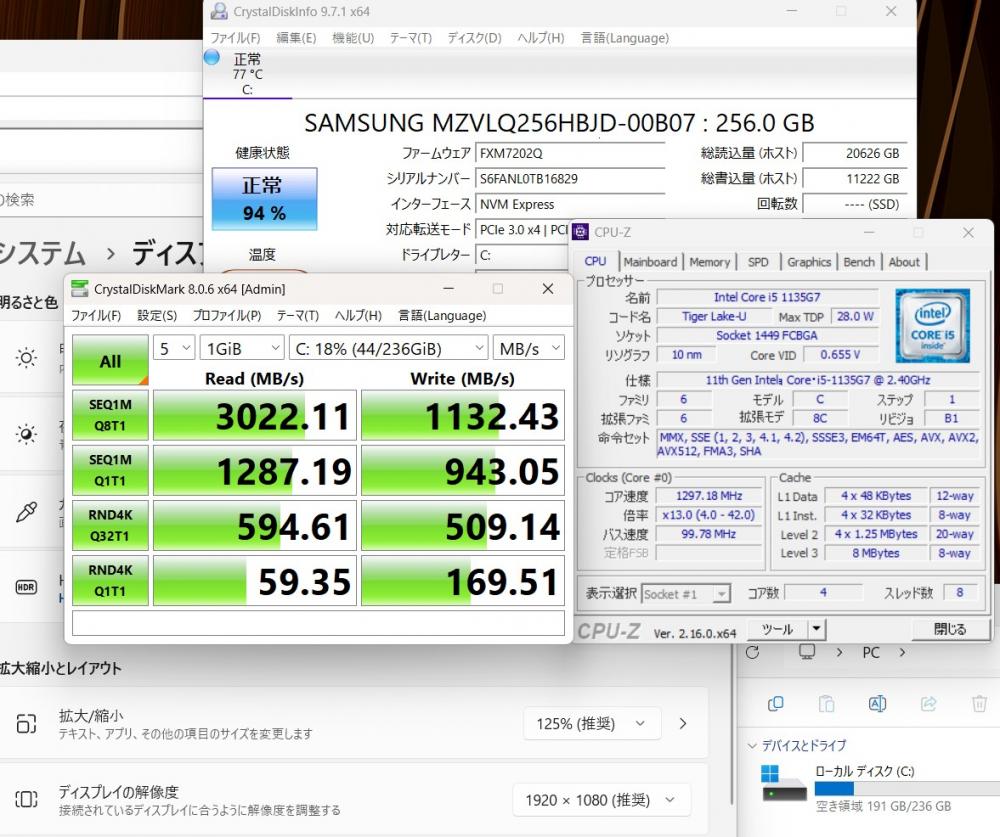 | CPU: 超高速 Intel 卓越性能 第11世代Core i5-1135G7 2.4Ghz、 4コア8スレッド (ターボ・ブースト利用時の最大周波数 4.2GHz) |