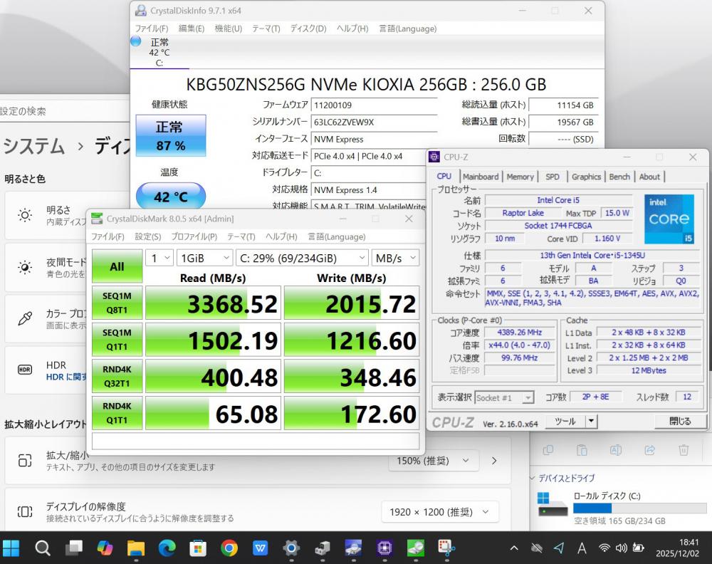 | CPU: 超高速 Intel 10コア 卓越性能 第13世代Core i5-1345u 1.6Ghz、 10コア12スレッド (ターボ・ブースト利用時の最大周波数 4.7GHz) |