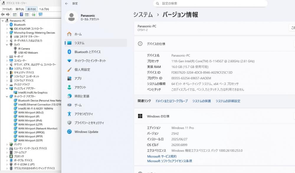 中古良品 フルHD対応WUXGA 12.1型 Panasonic Let's Note CF-SV1RDLKS Windows11 第11世代 i5-1145G7 16GB NVMe 256GB-SSD カメラ 無線Wi-Fi6 Office付き 中古パソコン 管:1459s