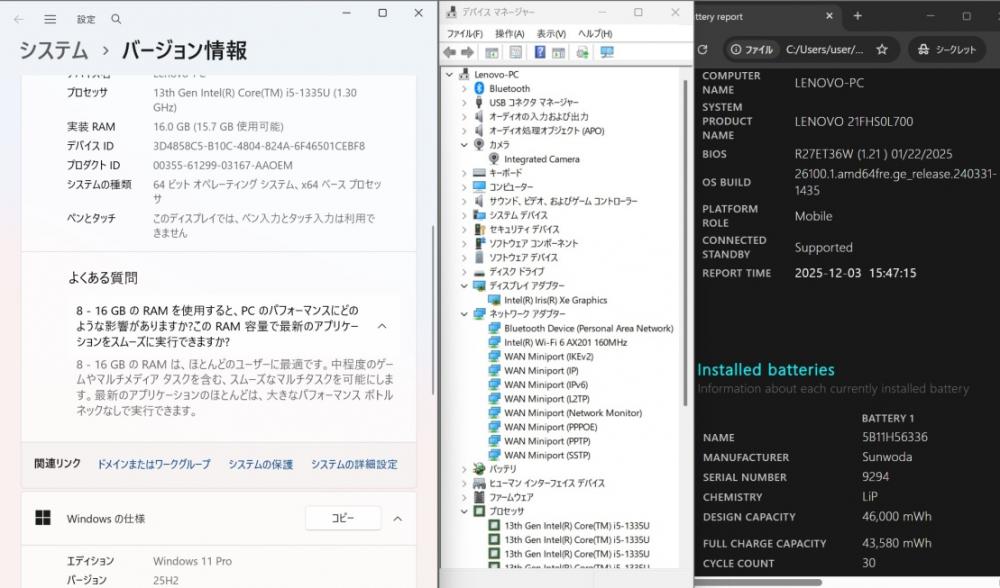| 型番: Lenovo ThinkPad L13 Gen4 |
