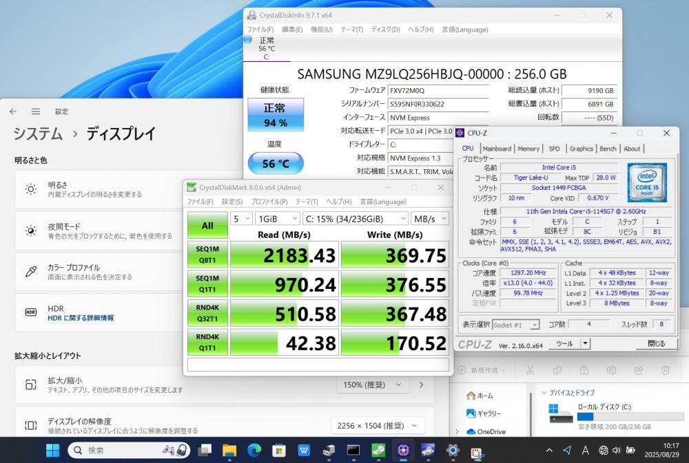 | CPU: 超高速 Intel 卓越性能 第11世代Core i5-1145G7 2.6Ghz、 4コア8スレッド (ターボ・ブースト利用時の最大周波数 4.4GHz) |